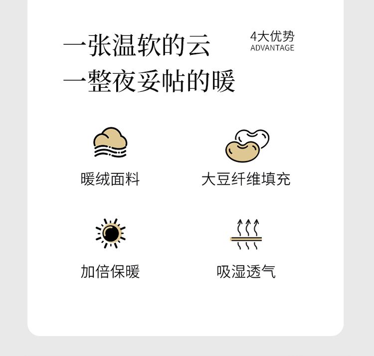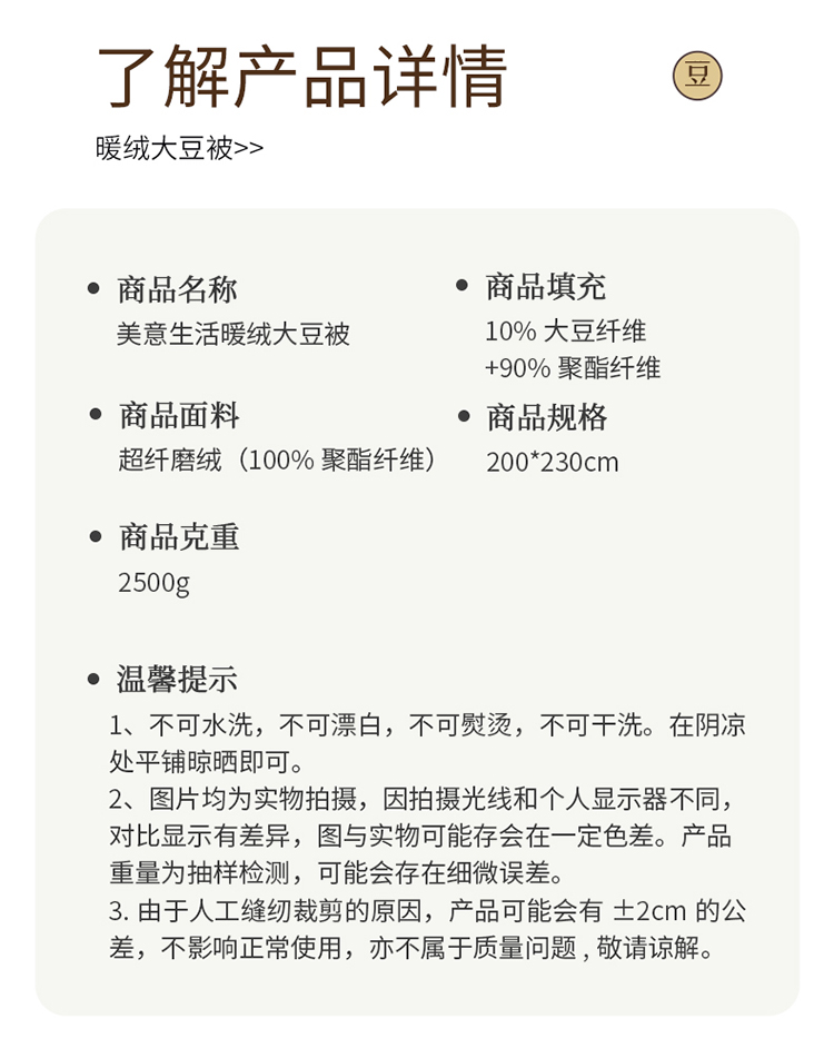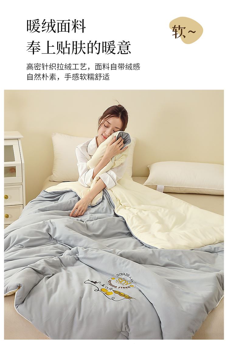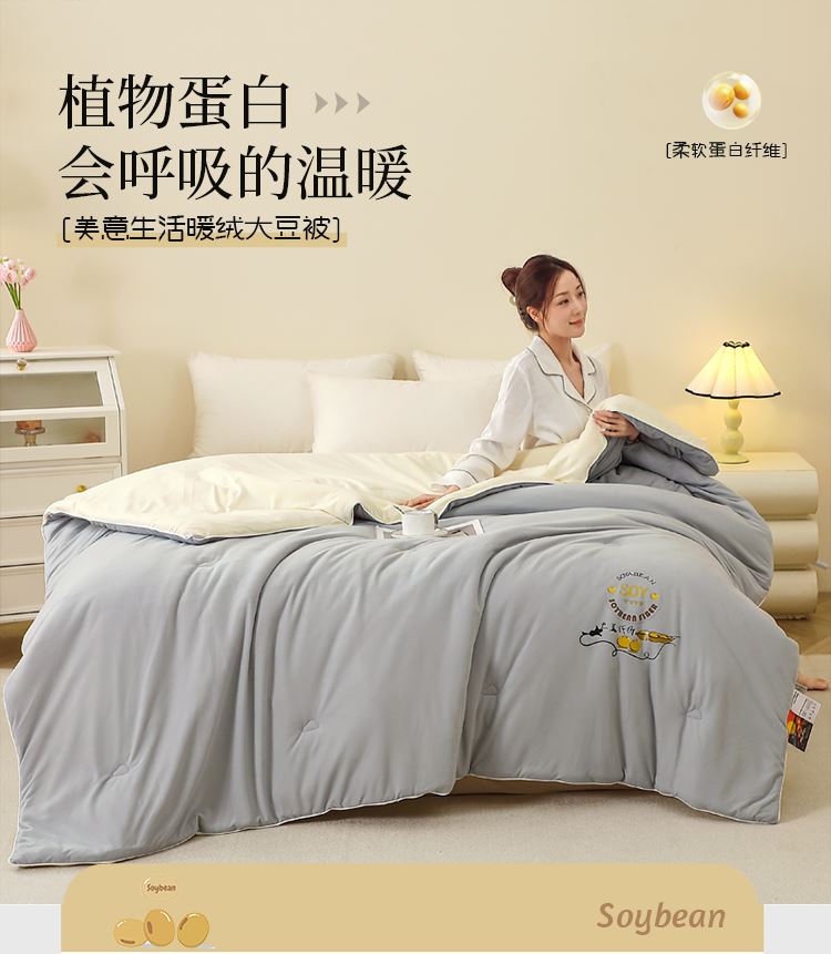 美意生活暖絨大豆被,110克高密高密針織拉絨工藝,純色雙拼,自帶絨感,自然璞素。AB面多用,立體嵌邊,是秋冬季的居家實(shí)用床品。
