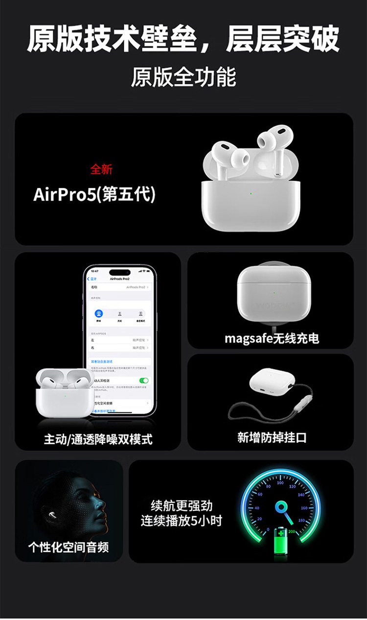 單耳機(jī)續(xù)航時(shí)長:約5小時(shí)