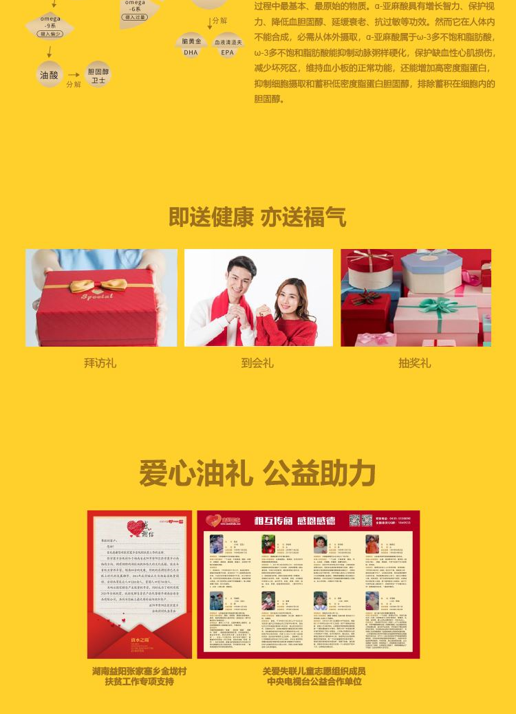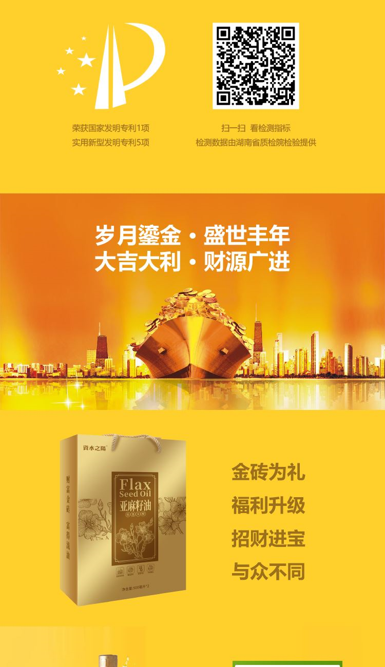 配置: 亞麻籽油500毫升*2瓶 尺寸: (內(nèi)盒)23*10*34cm (外箱)63*24.5*36.5cm 規(guī)格: 6盒/11.8KG/箱