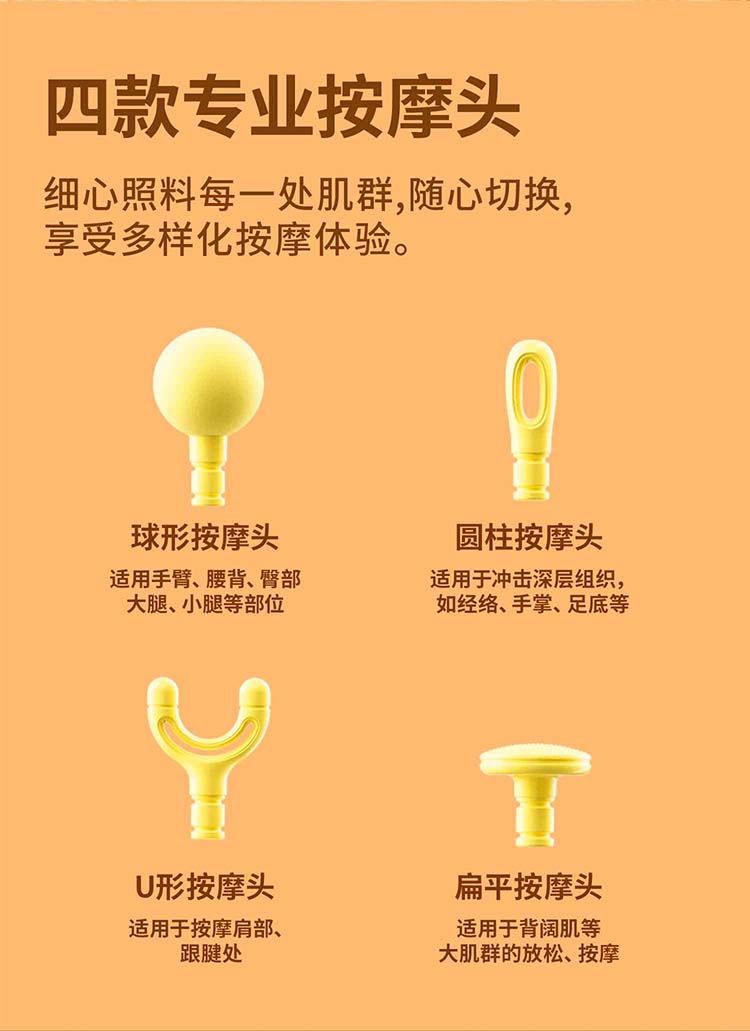 7.四款專業(yè)按摩頭: 細(xì)心照料每一處肌群,隨心切換,享受多樣化按摩體驗(yàn)。