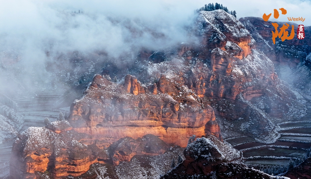 當(dāng)陽(yáng)光漫灑,積雪映襯著巖層的斑斕紋理,山間霧氣如輕紗浮動(dòng),仿佛大地正以靜默完成一場(chǎng)季節(jié)的儀式。這片雪中丹霞,既存地質(zhì)之雄魄,亦添冬日的空靈詩(shī)意。
