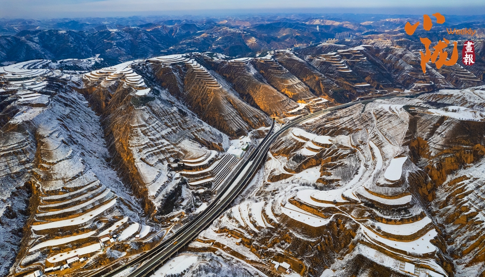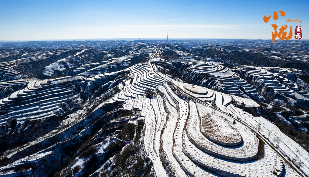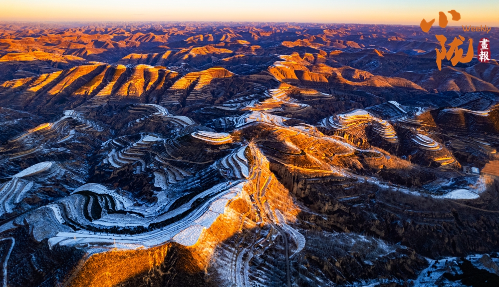俯瞰雪后華池,溝壑縱橫的黃土高原披上銀裝,陽光斜照雪野之上,投下深淺交錯(cuò)的光影,靜謐中流轉(zhuǎn)著溫柔的明暗,純凈而遼遠(yuǎn)。